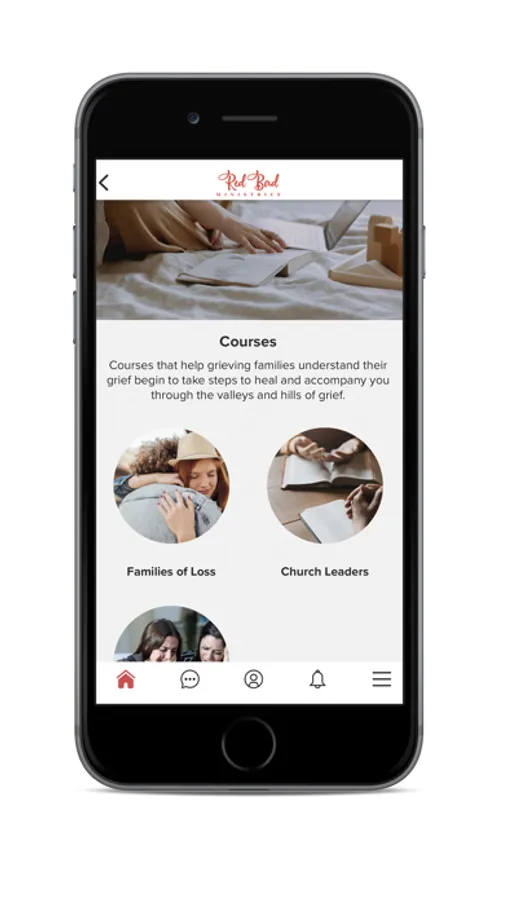 Red Bird Ministries (RBM) app is a unique community designed to offer support to ordinary families who are experiencing an extraordinary cross: the loss of a child. We serve families of child loss from pregnancy through adulthood. We provide a sense of belonging through intentional accompaniment to our families. We also share resources to help our families heal, offer course content for teaching about grief, and connect our families with trusted psychologists and spiritual leaders across the nation.