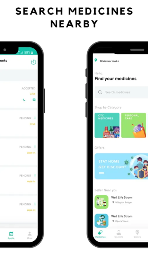 -Search & find availability of products and services in the nearby healthcare marketplace and order to deliver at the doorstep.