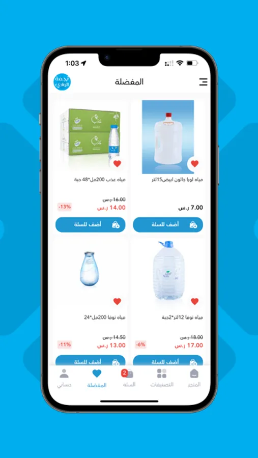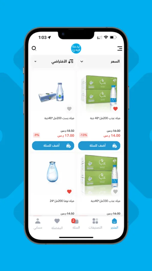 متجر متخصص في بيع المياه المعبأة ويقدم خدمة التوصيل للمنازل والمساجد والمناسبات