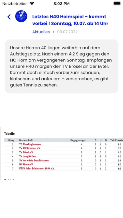 Die TG Thedinghausen gehört zu den schönsten Tennisvereinen in Niedersachsen. Mit dieser App verpasst du keine Neuigkeiten rundum den Verein. Alle Punktspieltermine sowie -Ergebnisse sind stets aktuell.