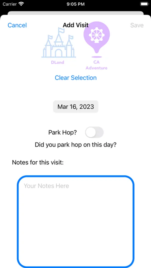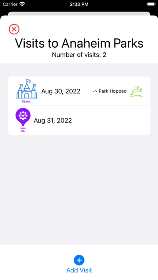 In addition, the app will log your visits to Dland or CA visits, including notation for park hopping.
