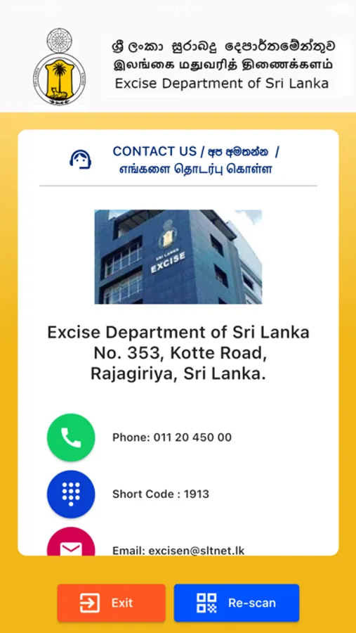 This App scans the 2D Barcodes on the Products approved by Excise Department of Sri Lanka and provides whether it is valid or invalid product. If the product is genuine, then this App provides following information about the product