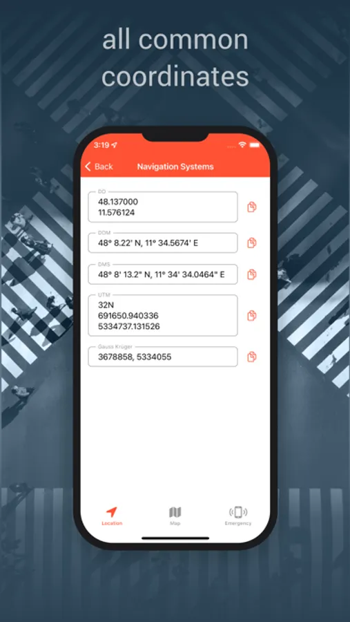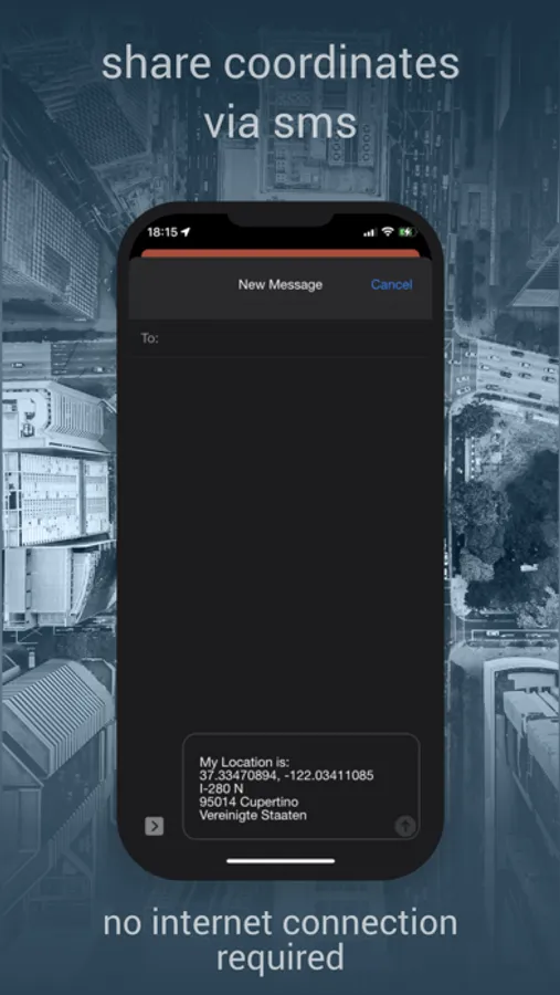 No internet is required to load your Coordinates and you can simply share them via SMS, directly from the App. So you can even ask for help without a internet connection.