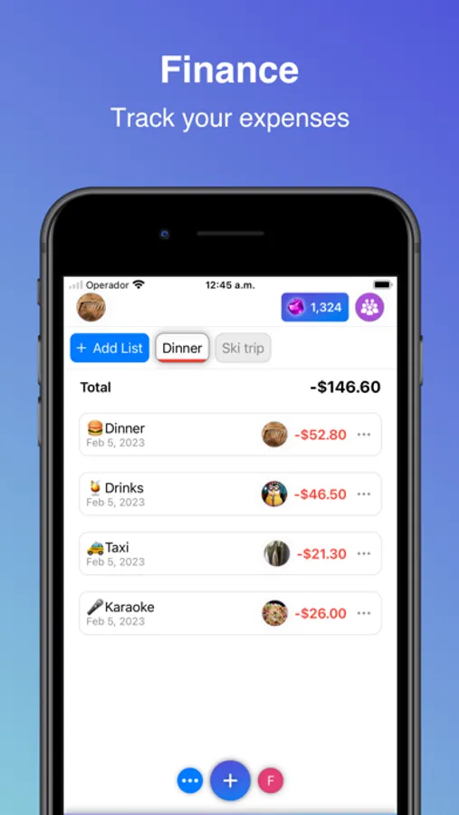 - Add your expenses and incomes in different lists to manage different budgets.