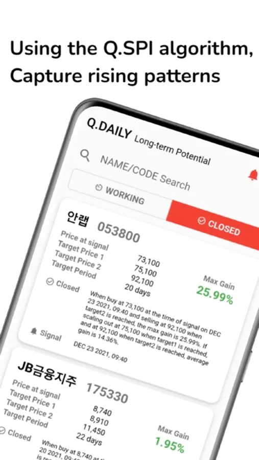 QSPI algorithm is a deep learned algorithm learned by simulating past data. From a completely different perspective from the existing service, we are reporting rising and soaring faster than anyone else.