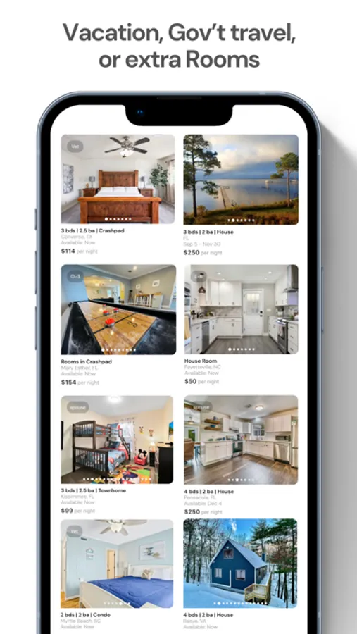 Book your next Vacation Rental, TDY or Gov't travel, or find an Extra Room with crew dogs®. Become a host and help other military or spouses today.