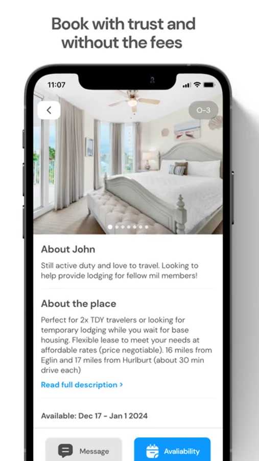 List a couch, room, or entire place nightly, short-term, or mid-term. Filter, find, book, and message with other Active duty, Reservists, Veterans or Spouses around every military installation or city in the world. Whether you're vacationing, PCSing, or going TDY, crew dogs® lets us exclusively rent to or stay with other trusted people from our military community.