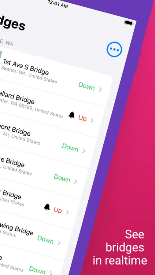 Easy Bridge Tracker allows you to track which bridges are up and down in real time. Get notified the moment your subscribed bridges change status.