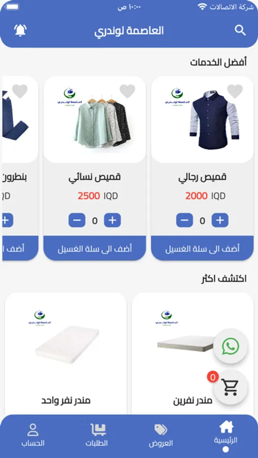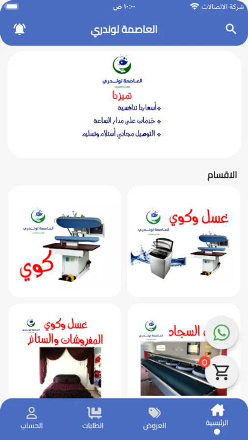 التطبيق الاول في العراق في مجال الغسيل والكوي وخدمات اخرى متنوعة بجودة ودقة عالية وتجربة طلبات ممتعة عبر التطبيق .. ويهدف التطبيق تقليل وتوفير الوقت الالزم للحصول على كافة انواع الخدمات المتعلقة بخدمة الكوي والغسل بسهولة تامة مع امكانية اعطاء الآراء والملاحظات والاتصال بنا من اجل تقديم خدمات افضل وتطوير دائم