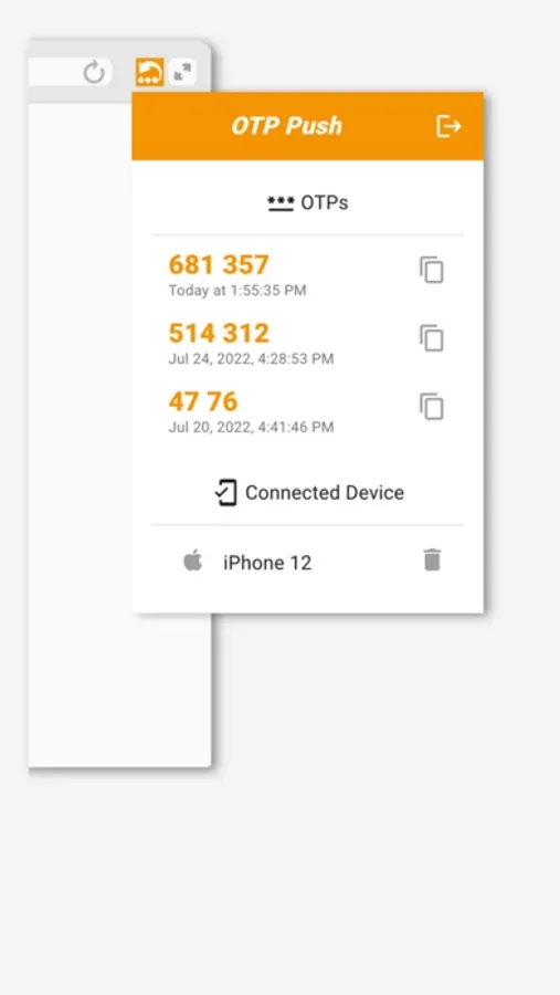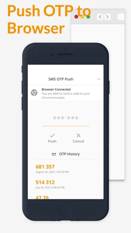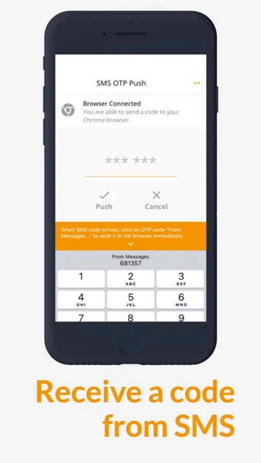 The OTP Push helps you to transfer code from SMS to your desktop Chrome browser in an easy way. Just install the mobile app and Chrome extension from the official app stores. Scan the browser extension's QR code by the mobile app to connect your phone to desktop Chrome. Push the code from SMS to the connected browser.
