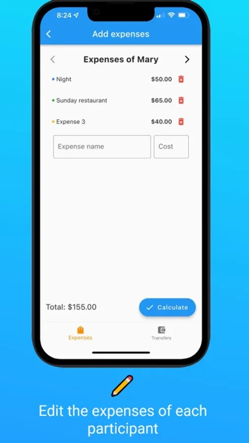 Whether you take a vacation with friends or go away with colleagues, Divide Expenses is the app for you.