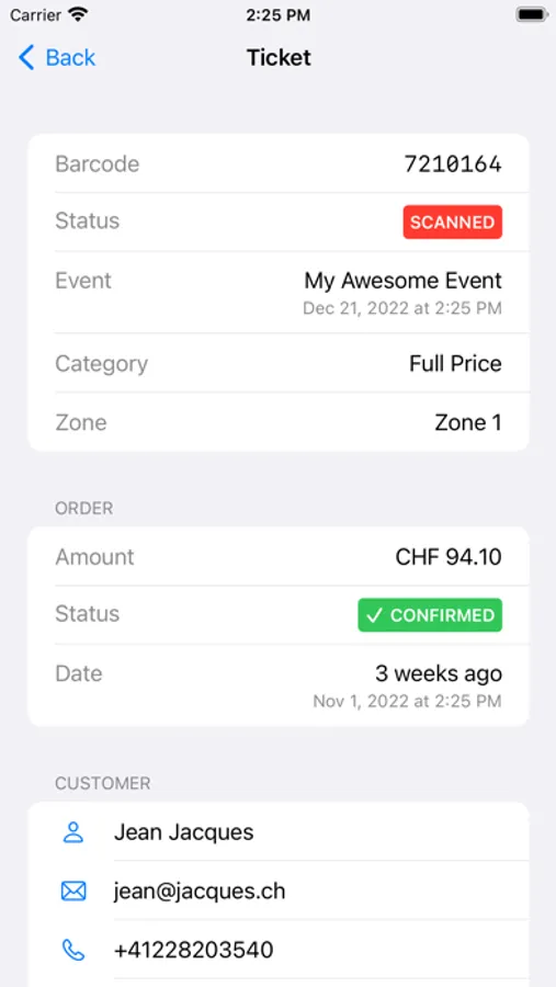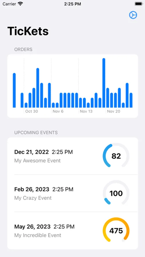 See your upcoming events, check tickets details, search for clients, and get an overview of how sells are going on.