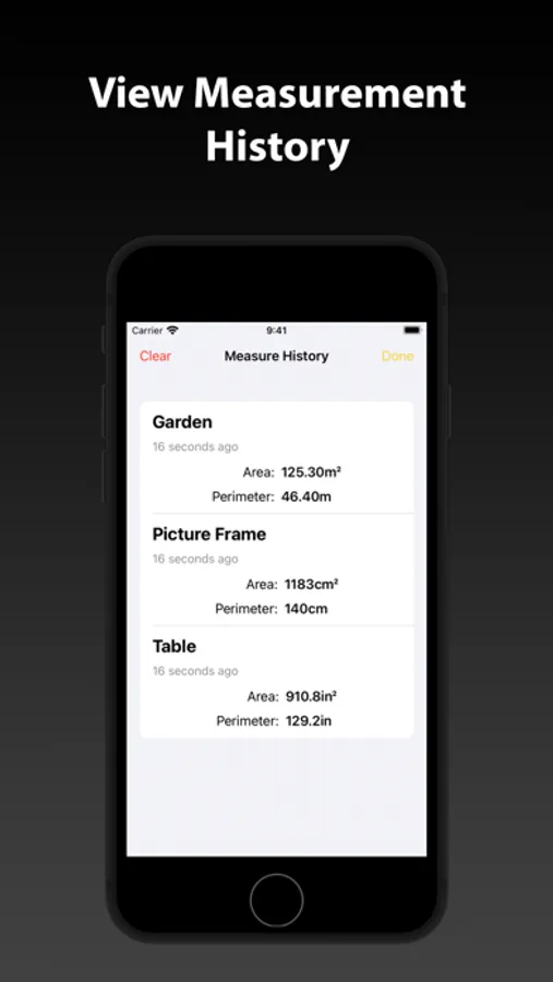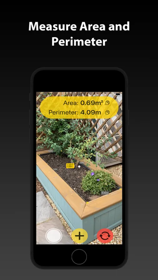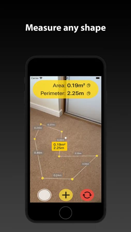 Measure Area allows you to easily measure the area, perimeter, and length of any horizontal or vertical shape within your space. You can edit and delete edges as you go, take a picture of the scene, and copy the measurement values to your clipboard. A history of measurements are stored in their respective units and can be individually named to refer back to later.