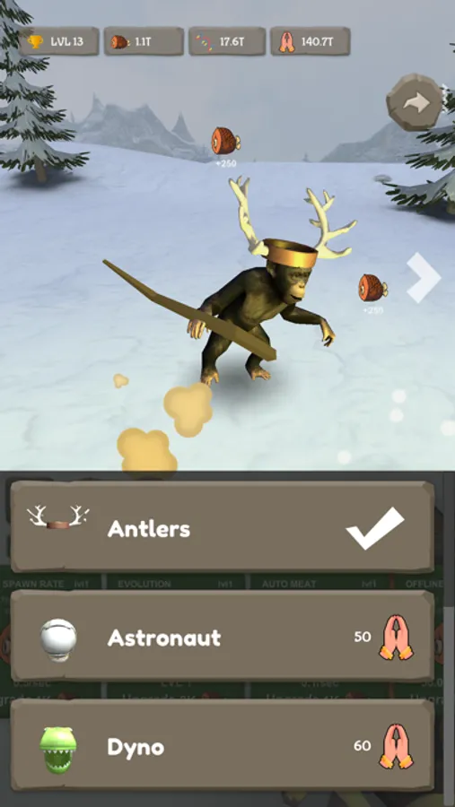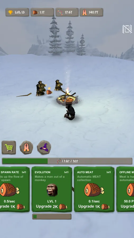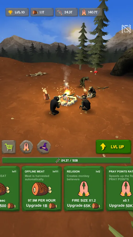 Improving your environment and skills, will give you more fire and more meat. DNA will allow you to level up and gain new abilities.