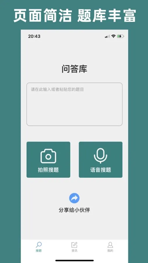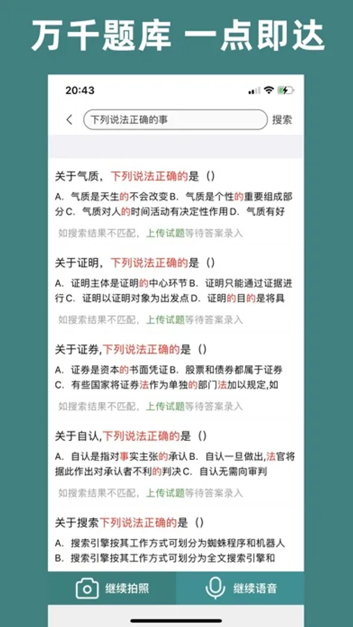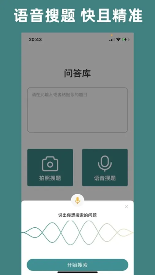 问答库APP是一款针对各种考试的搜题神器,语音拍照文字搜题,答案秒出,收录上千万题库,搜你所想,答你想要!