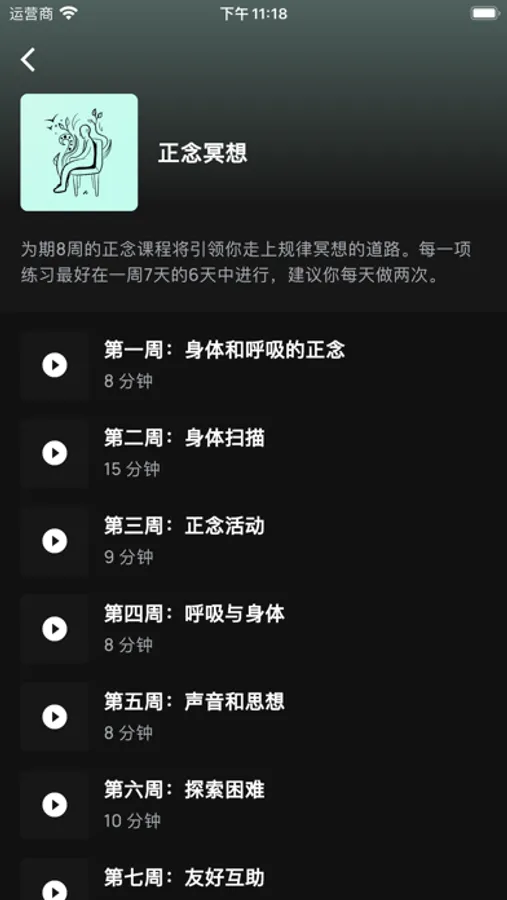 通过呼吸练习、身体扫描、思维训练、觉察情绪、清理思绪等正念冥想练习,释放自己,安住当下,倾听内心,获得由内而外的放松与平静。一呼一吸间,跟随冥想指导,感受爱的力量。万物并作,吾以观复,感恩他人幸福自己。放下焦虑与担忧,清除杂念与压力。