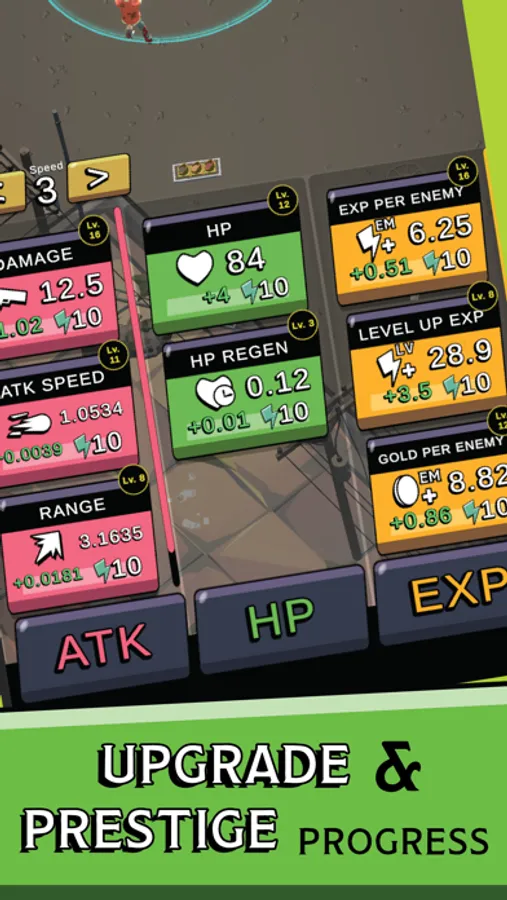 Never fear! Upgrade your hero Grimy Rick to shoot faster, harder, stronger, and annihilate any zombies hunting for brains.