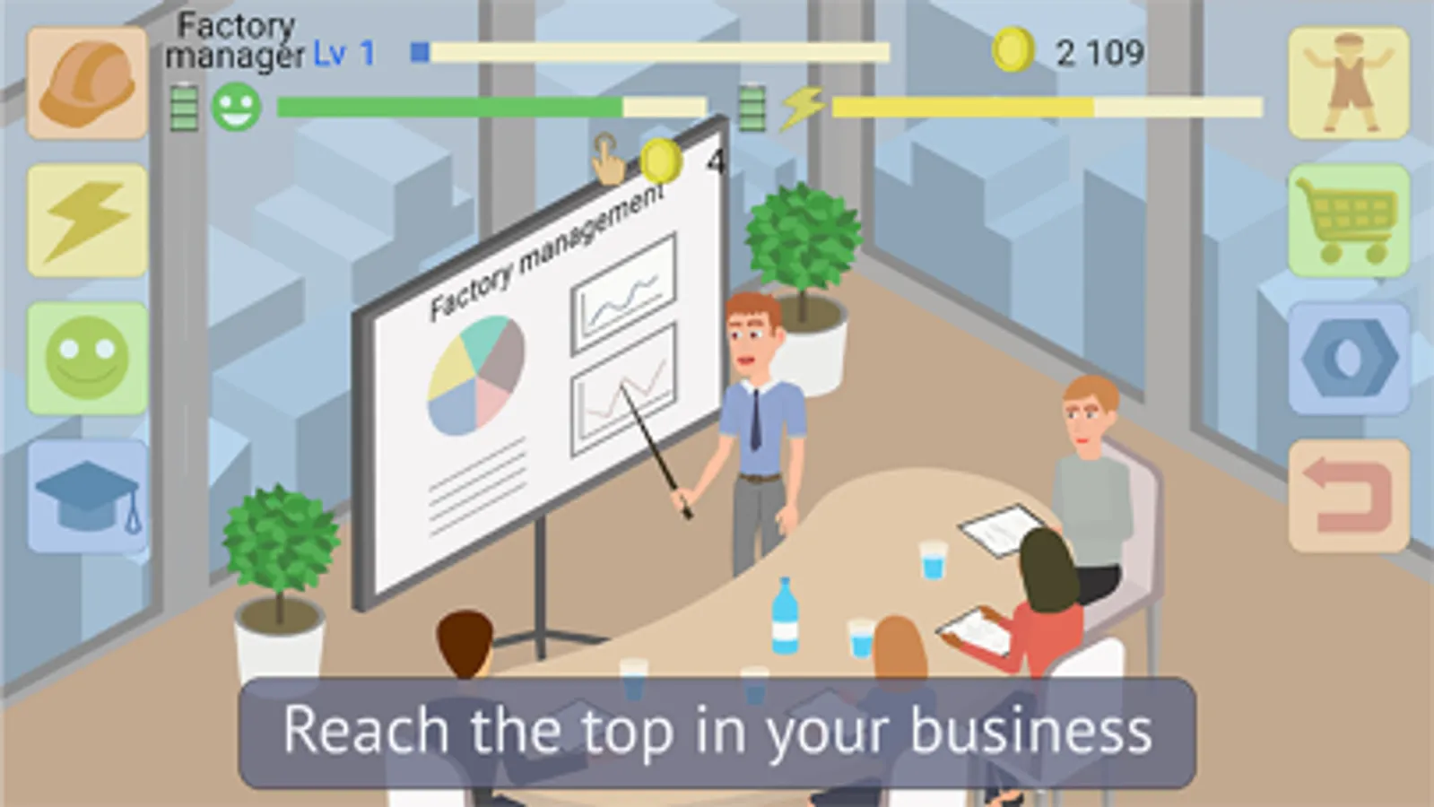 - Climb the ranks in a factory, from a helper to a factory manager.