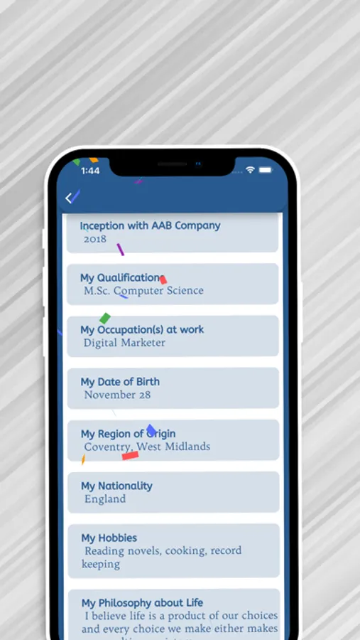 An app curated for Company and its staff across The UK, entailing their backgrounds, profiles and autobiographies.