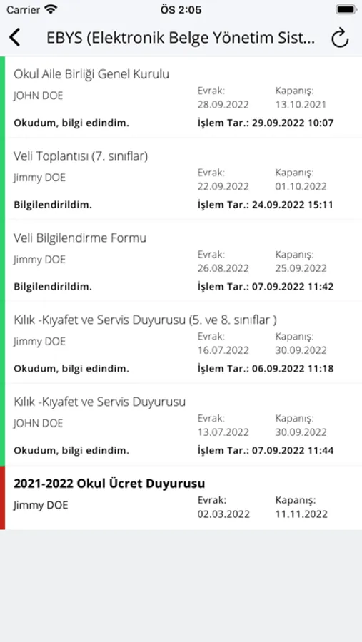 Okulumuz velileri için yayınlanacak belge ve duyuruların takibi.