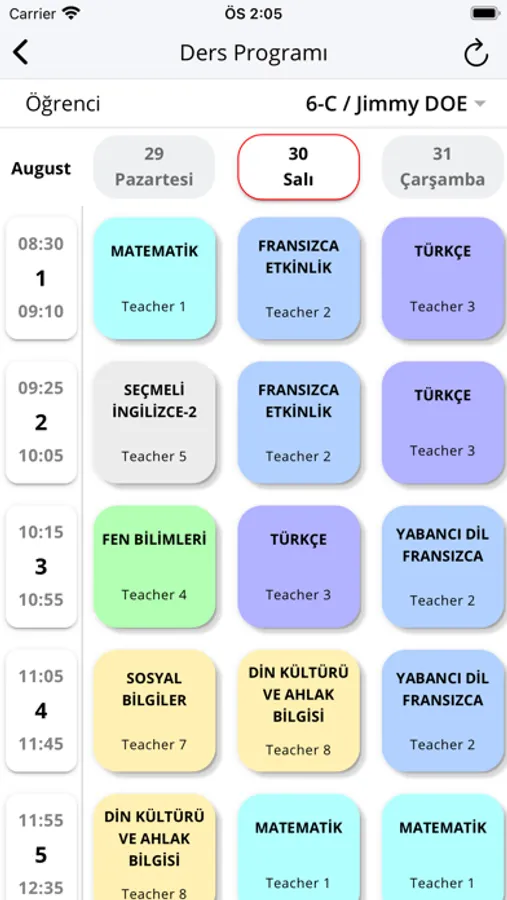 Öğrenci ders programı ve sınav tarihlerinin takibi.