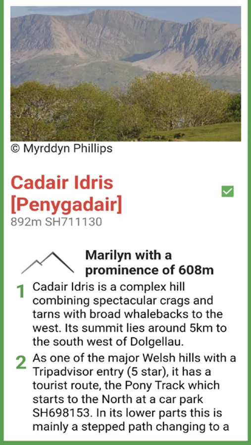Are you ready for the challenge of climbing the 159 Welsh Marilyns (y Marilynau)? Marilyns are hills that are 150m higher than the surrounding land. Track your progress on your own personal log and with an interactive map from OpenStreetMap.