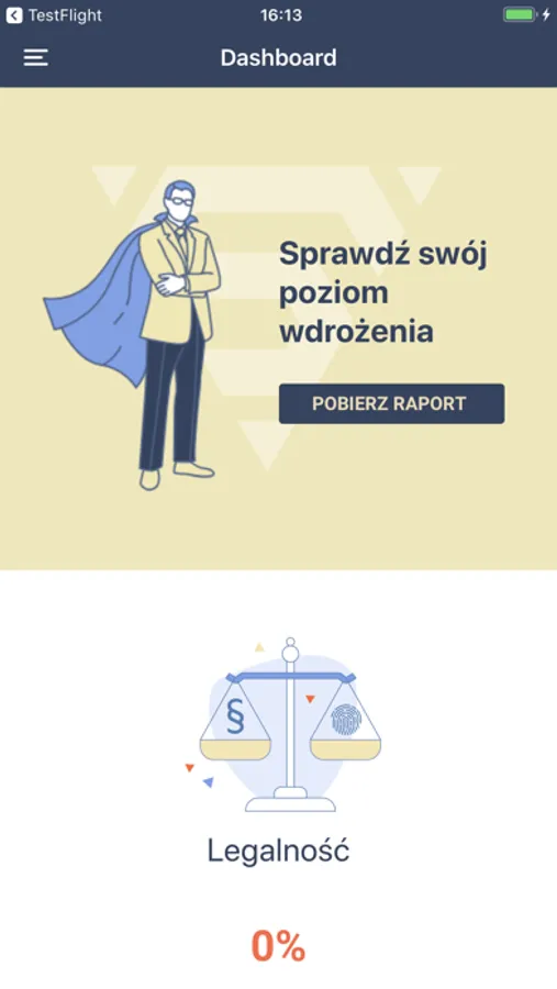 - dahsboard - monitorowanie zgodności z RODO w 5 kluczowych obszarach: legalność, świadomość, zabezpieczenia, regulator, prawa osób, których dane są przetwarzane