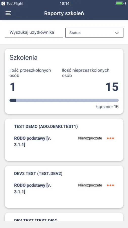 - raporty szkoleniowe - możliwość przeglądania statusu realizacji szkoleń, oznaczania szkoleń jako nieukończone lub/i zaliczone