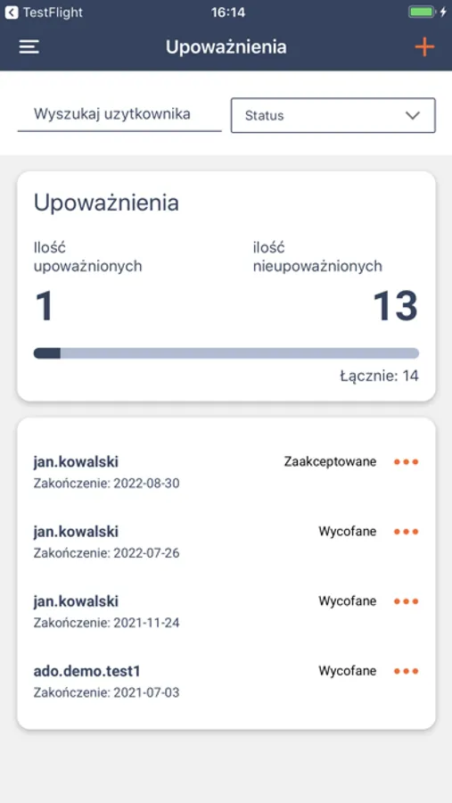 - upoważnienia - możliwość przeglądania, nadawania pobierania, usuwania i wycofywania upoważnień