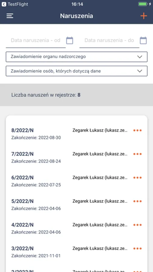 - naruszenia - możliwość przeglądania, dodawania, usuwania i edycji naruszeń i incydentów RODO