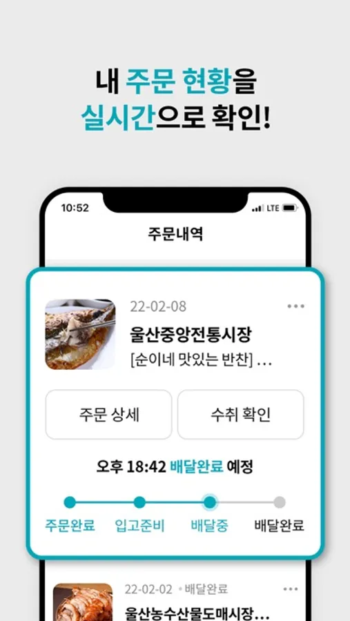 - 언제 어디서든 실시간으로 나의 주문 현황 확인이 가능합니다.
