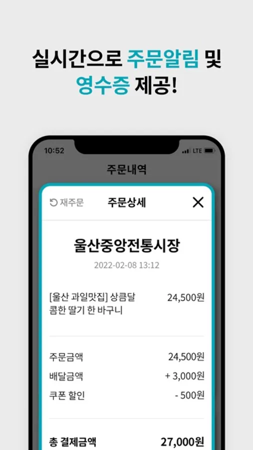 - 주문시 SMS/앱푸시를 이용해 실시간으로 주문현황을 알려 드립니다.