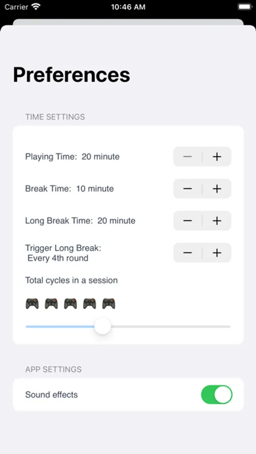 - Play Time Tracker: It shows remaining playing/break time with remaining cycles in your session. You can start/pause with clicking.