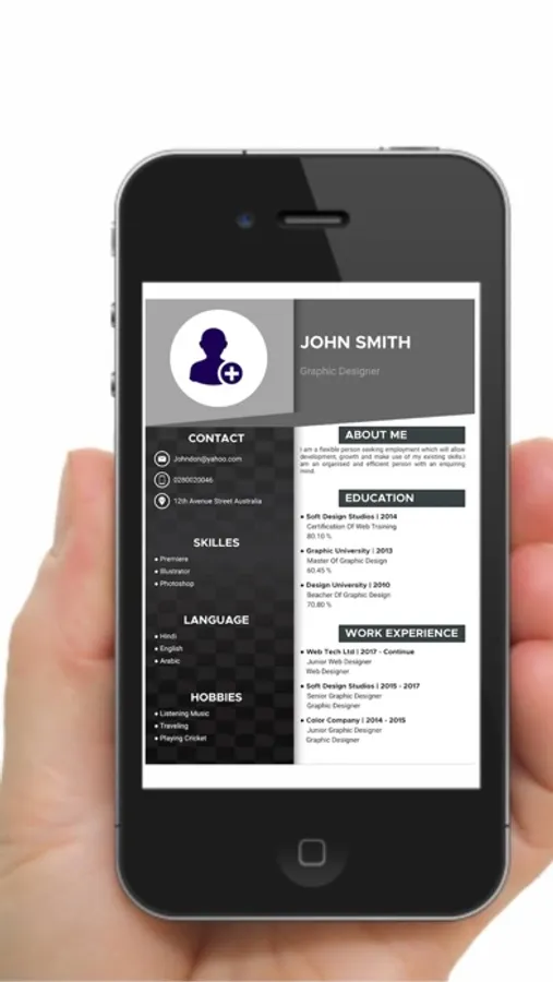 Apart from resume & CV, Resume builder app helps to create biodata and portfolio for job with available few biodata formats.