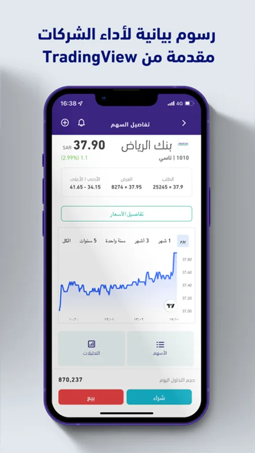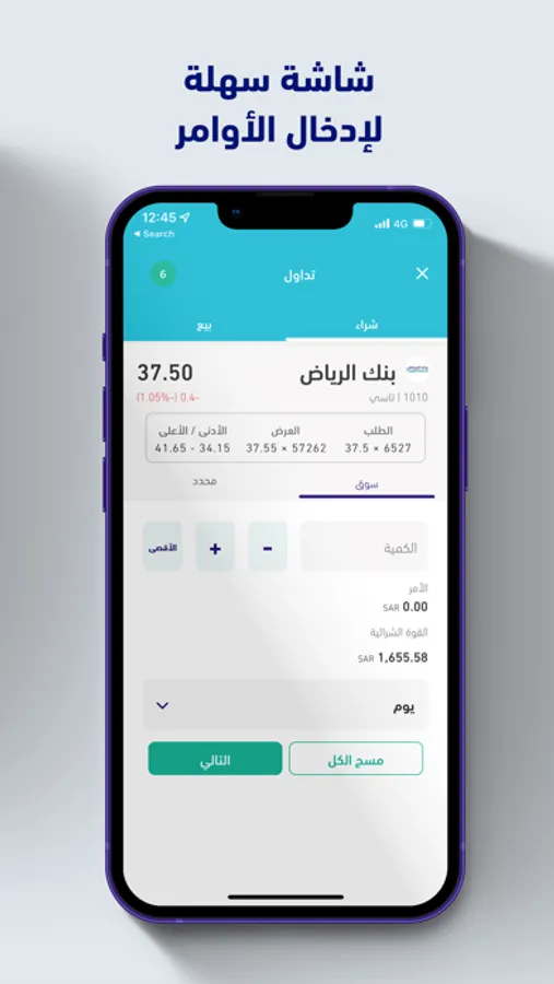 بأعلى معايير السهولة والأمان تطبيق الرياض المالية يضع جميع خدمات التداول بالسوق المحلي بحلول رقمية فريدة تضمن لكم تجربة استخدام مميزة مع باقة من المميزات المصاحبة لتعاملاتك الرقمية.