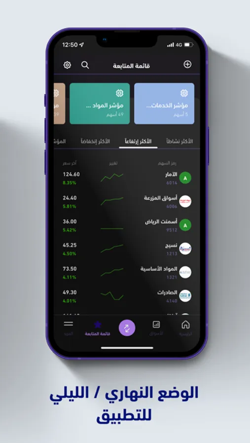 شاشة متابعة الأسهم دون الحاجة لتسجيل الدخول