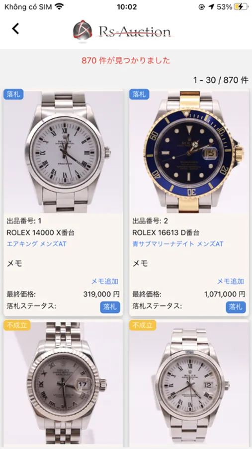 他、過去に開催したオークションの相場検索もご覧いただけます。