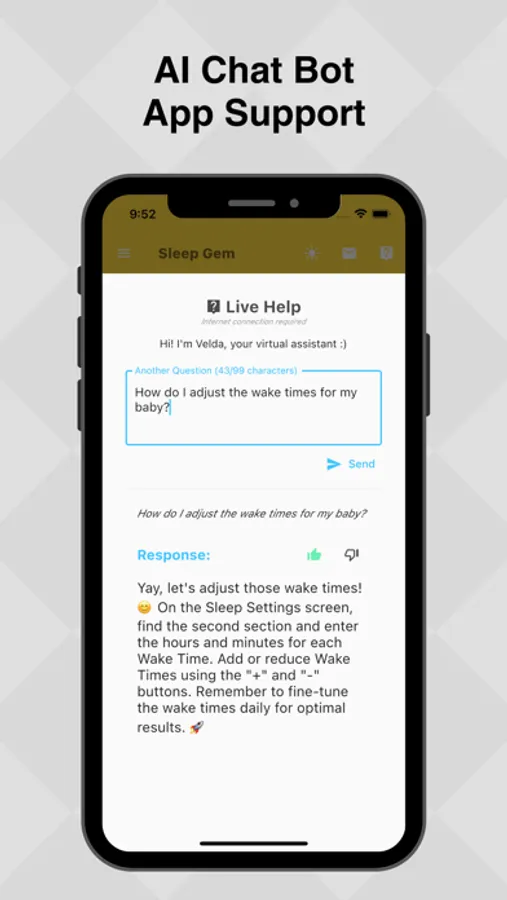 Sleep Gem is more than just a sleep tracker. Our AI-powered chatbot offers troubleshooting support for common sleep issues and provides expert advice for creating the perfect sleep environment for your baby. Whether you're struggling with sleep regressions, nap transitions, or night wakings, Sleep Gem is here to help.