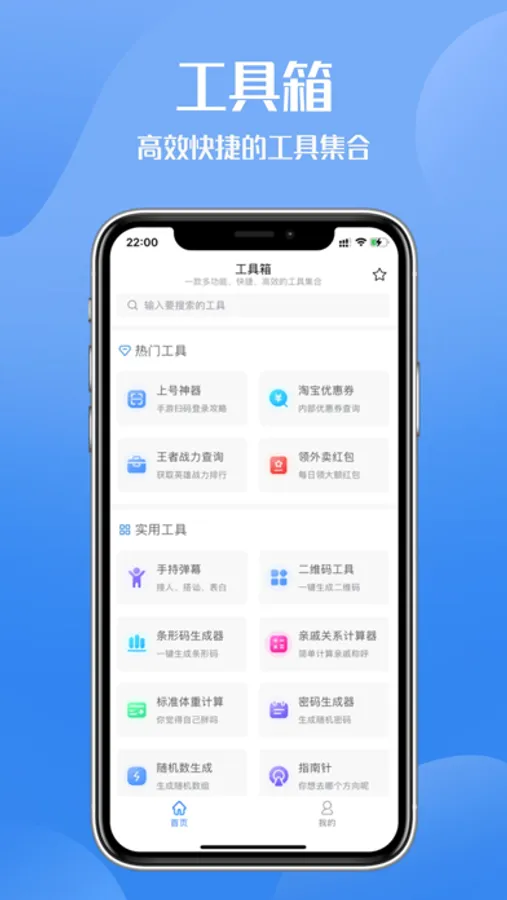 上号神器工具箱是一款多功能、快捷、高效的工具集合App,提供多种实用小功能,简约而好用,致力于为广大用户提升工作、学习、生活各个方面的效率。诸多实用功能,触手可及,用完即走。