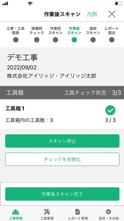 報告業務用に、過去の工具チェック履歴のレポート出力が可能です。