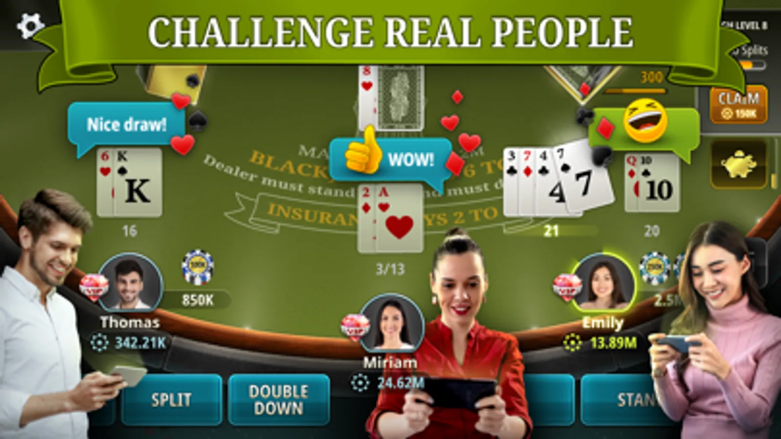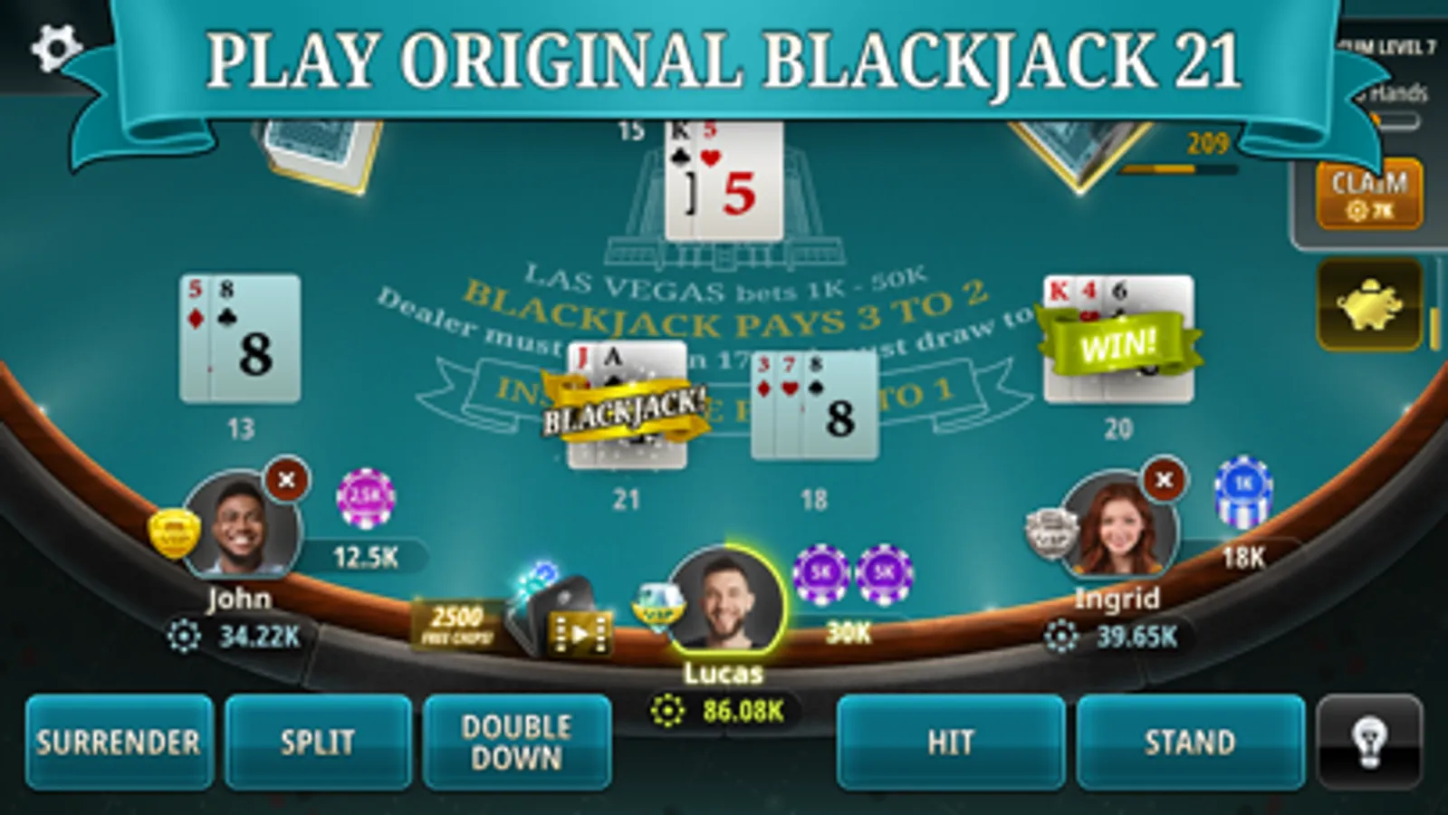 This is just a blackjack card game simulator and NOT a real money-paying game. It does not guarantee success in real money gambling.