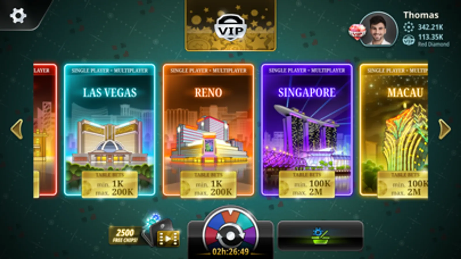 - Various World Casino tables such as Las Vegas, Macau, Monte Carlo, and many others!