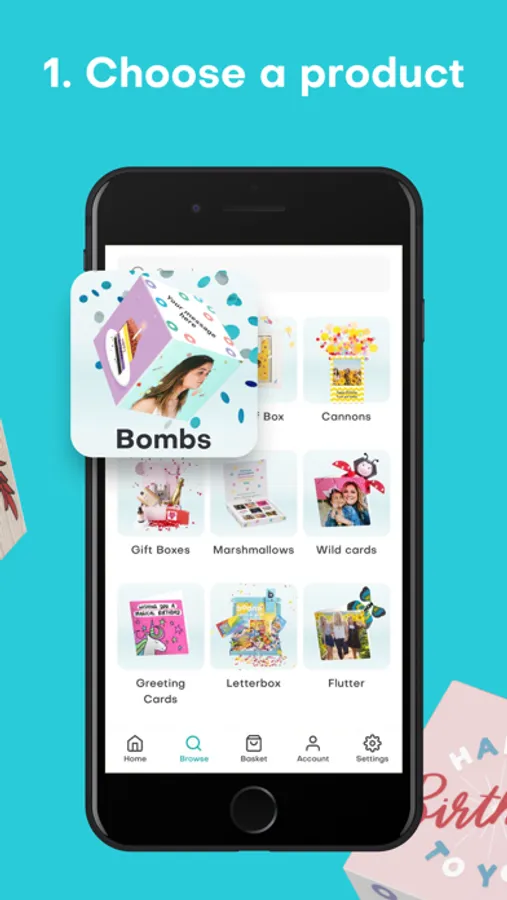 - Unique cards & gifts. From our viral Boomf Bombs to exploding confetti gift boxes, from the cute 3D pop-up cards to the yummy photo marshmallows - every Boomf creation is one of a kind.