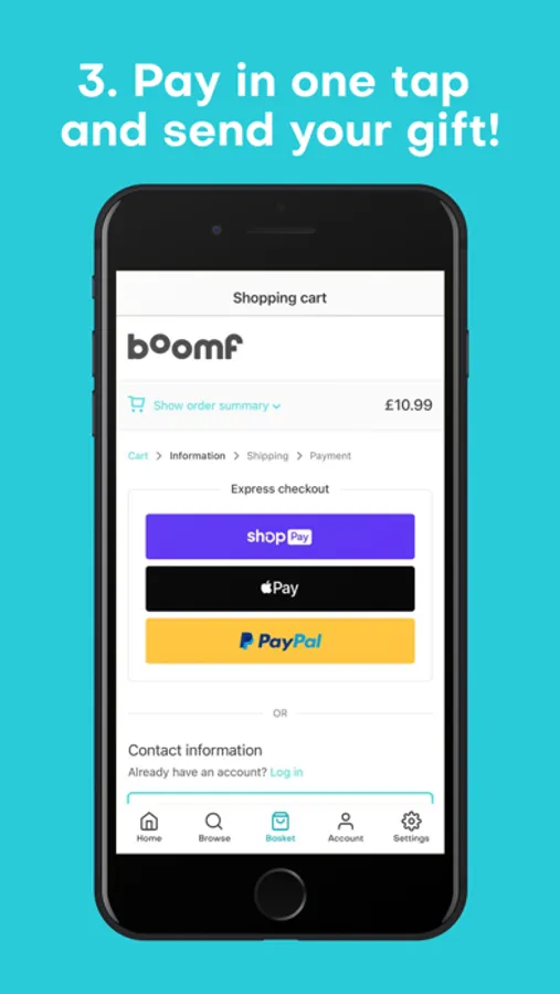 - Stay connected. Find the delivery option that suits you best. Even if you forget about an upcoming birthday and need a card or gift ASAP, Boomf will handle it.