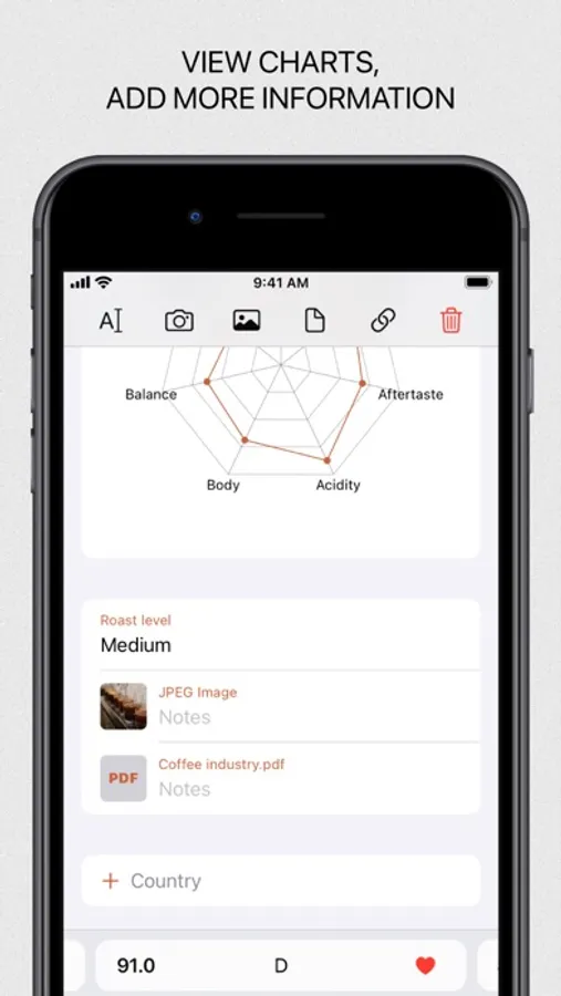 That's why we have created a convenient and intuitive app with forms to fill out all the characteristics according to world standards. It saves all of the data, so you can always go back and find something you like.
