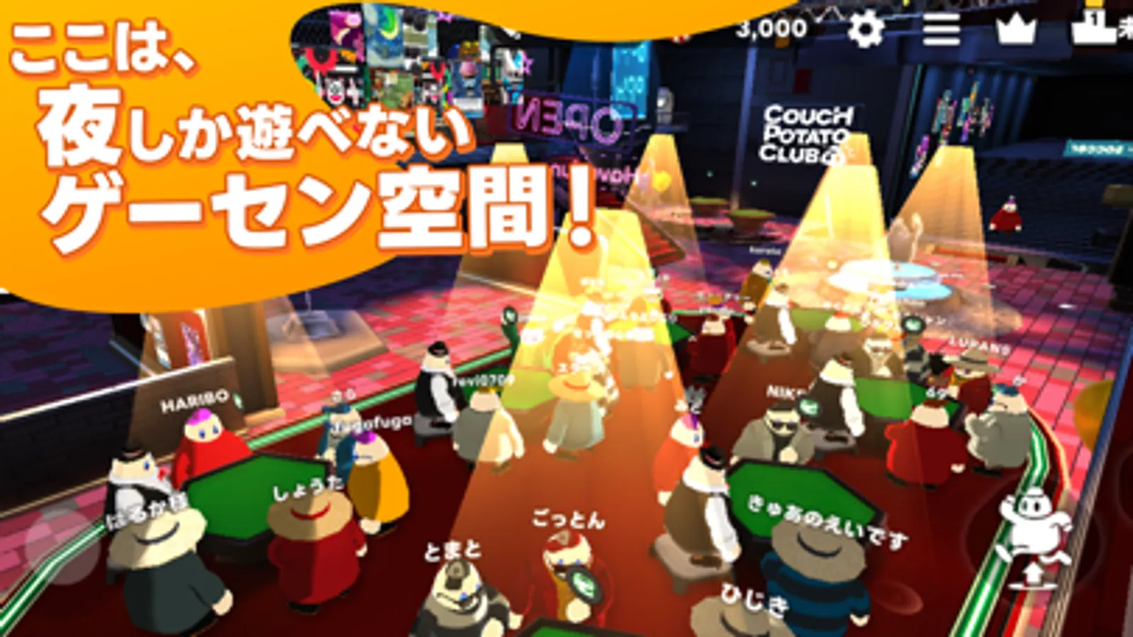 COUCH POTATO CLUB is an arcade space where you can only go to play at night.