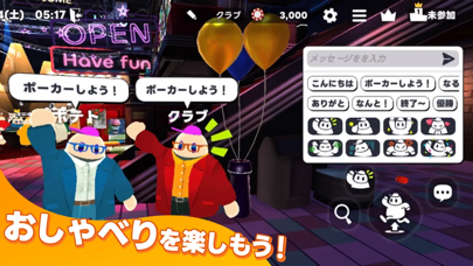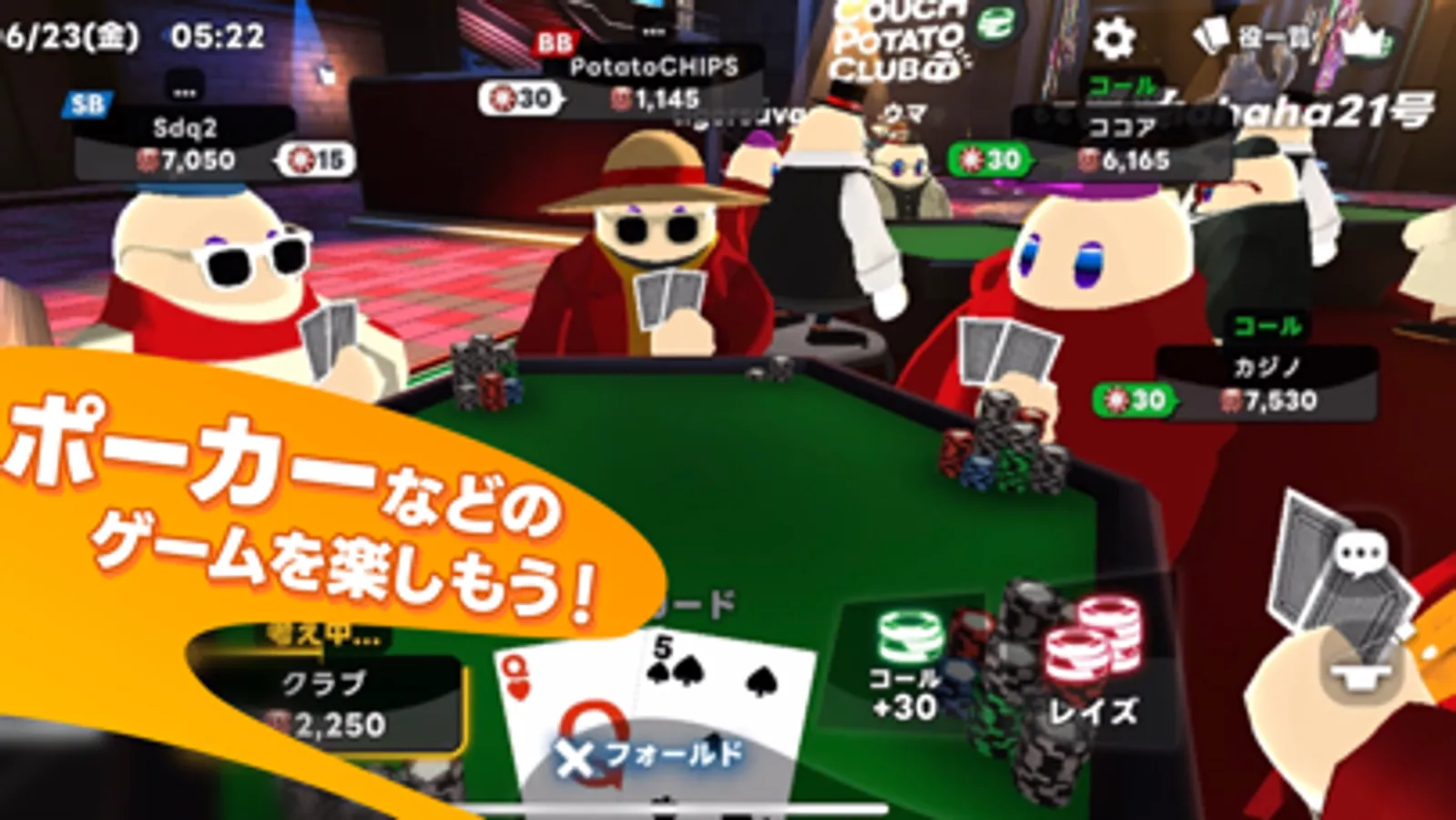 You can play with only the chips you get for free every day, so even if you are a new user, you can have fun right away with your friends who are regulars!