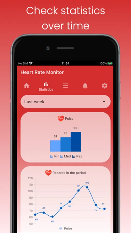 Instant pulse tracker that calculates your heart rate and check the statistics over time.