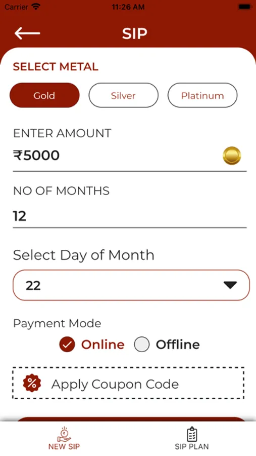 Customers can create an Monthly Saving Plan (SIP) in the App.