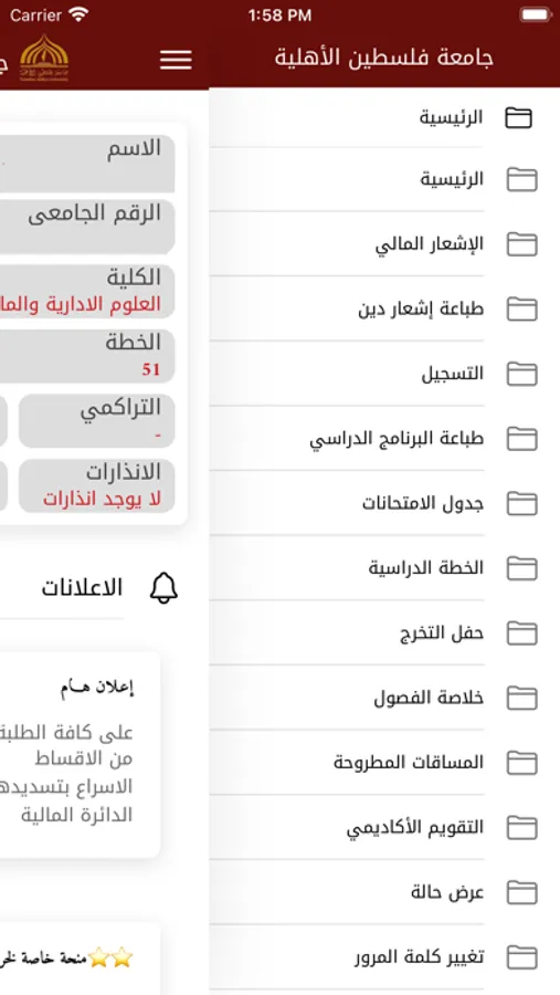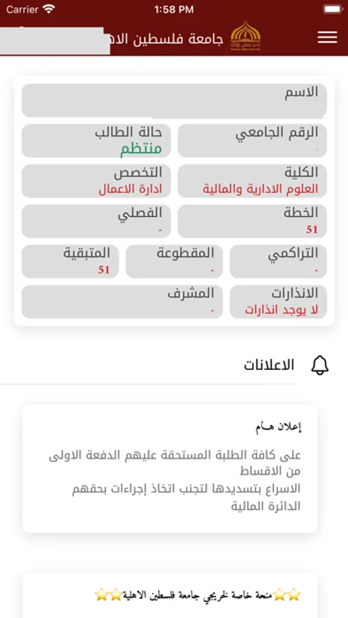 - المعلومات الجامعية للطالب